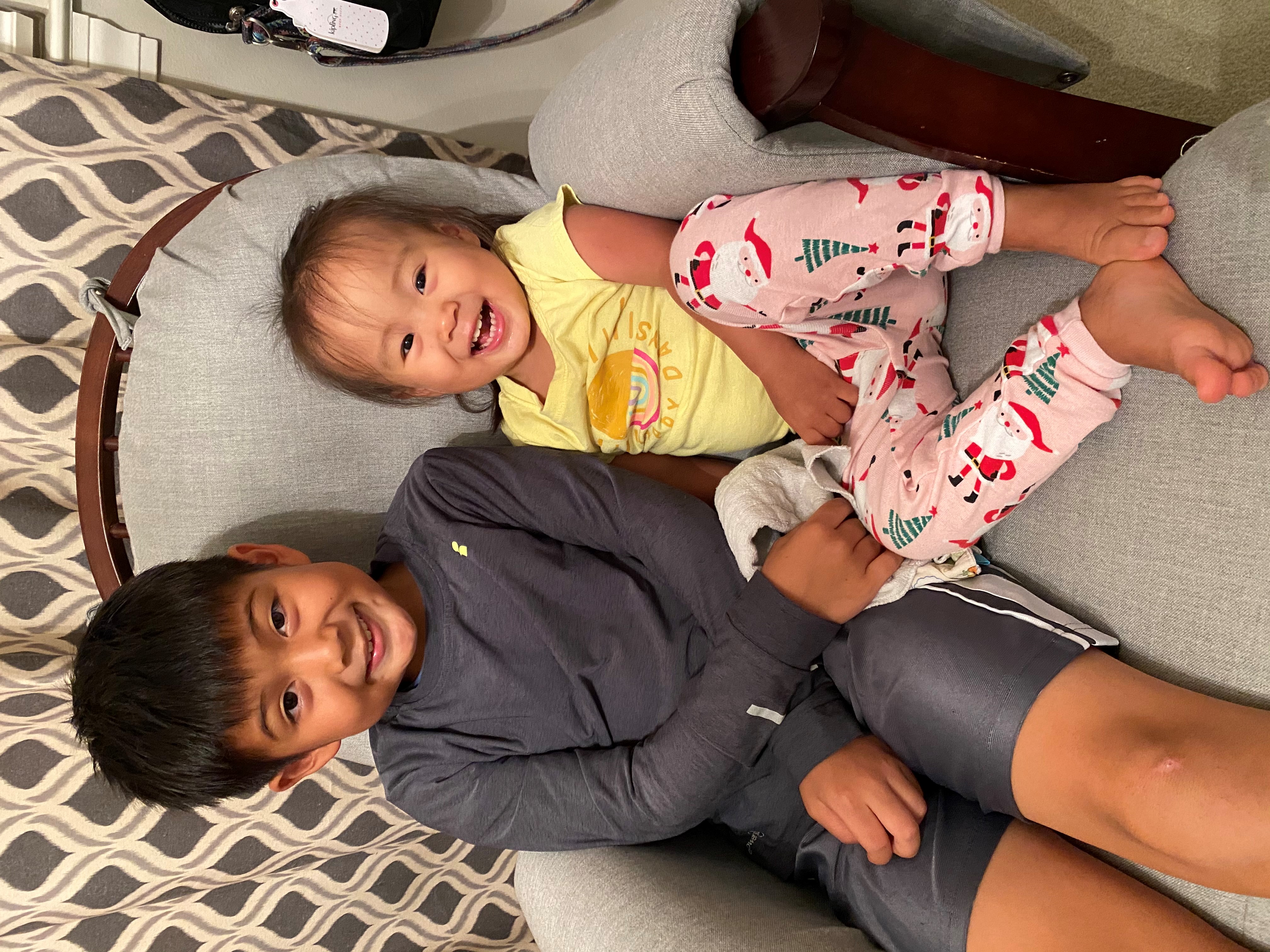 Painting of two children and a bulldog.