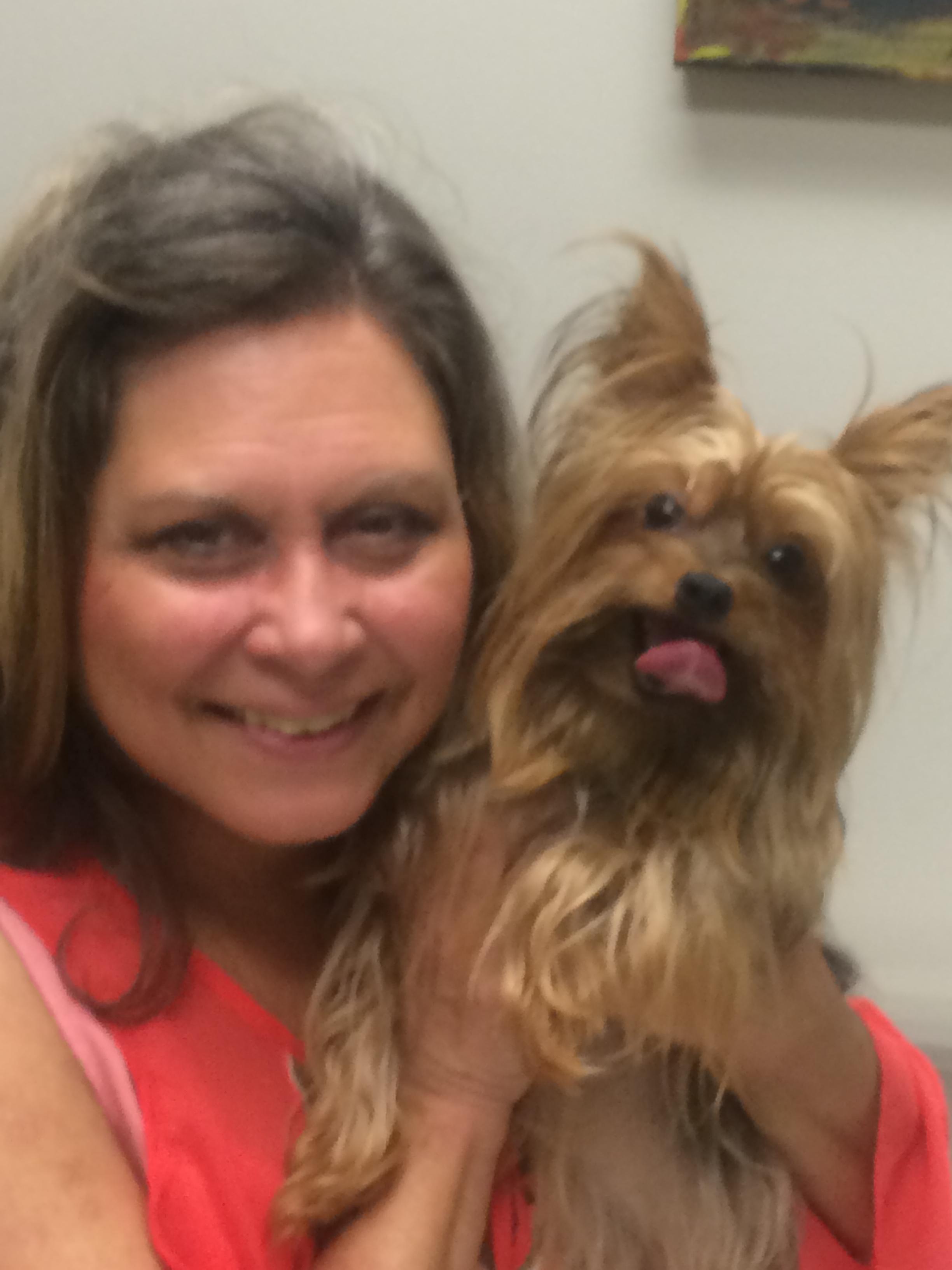 Oil painting of a woman and her Yorkshire Terrier.