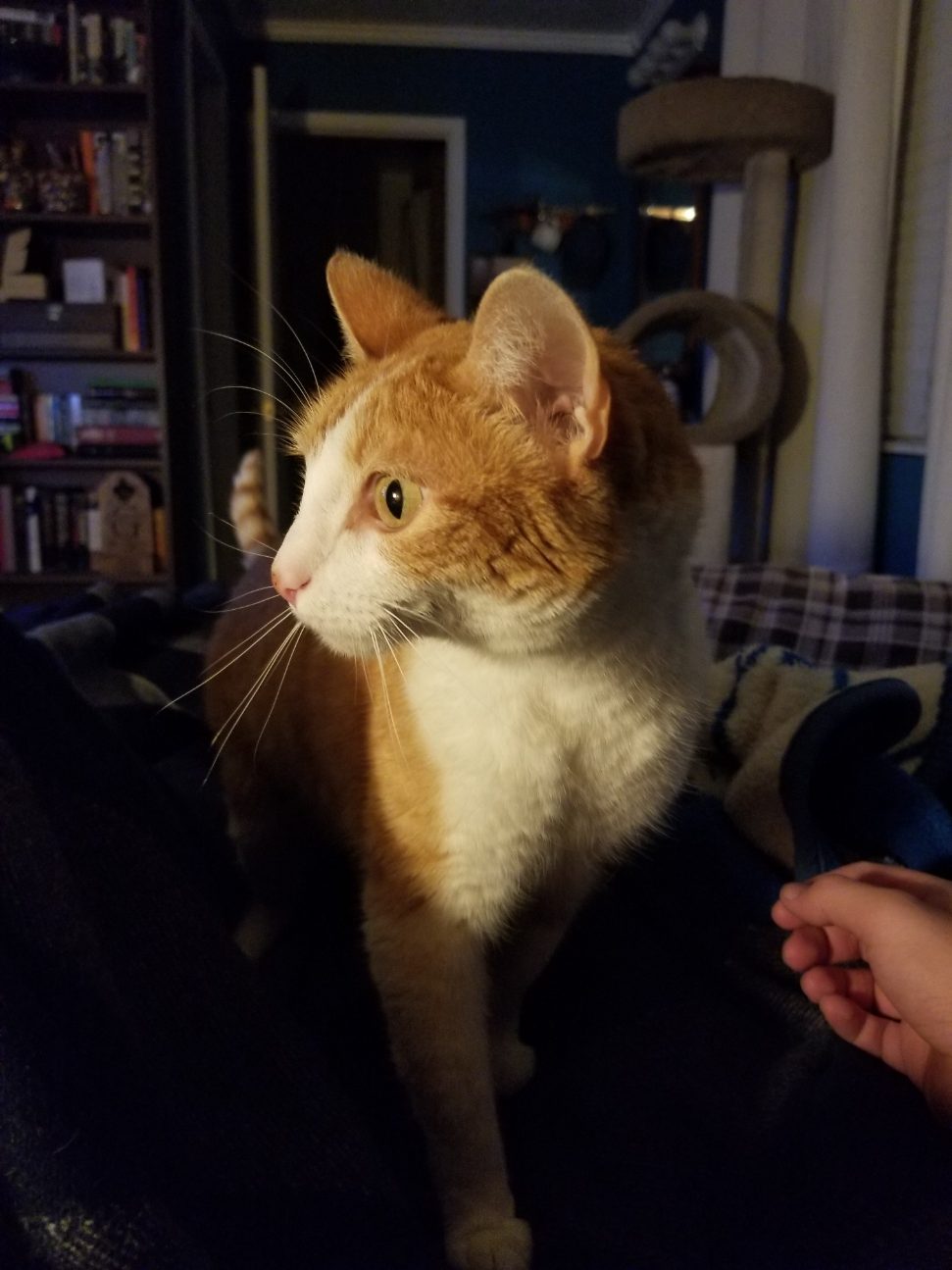 Oil painting of an orange tabby cat in profile