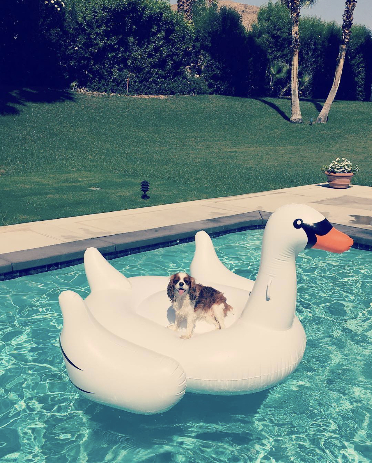 Painting of a Cavalier King Charles Spaniel wearing a red and black plaid bandana