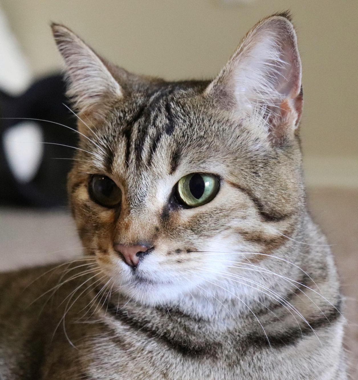 Oil painting of a grey tabby cat