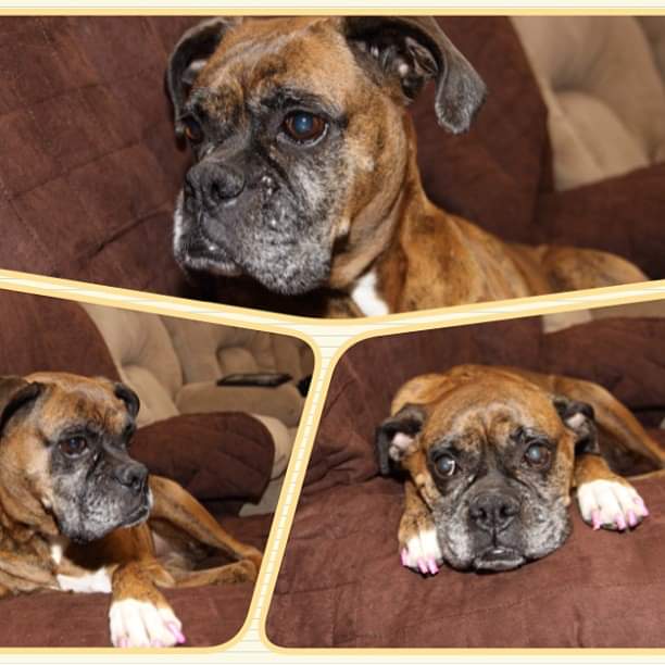 Painting of a fawn Boxer dog