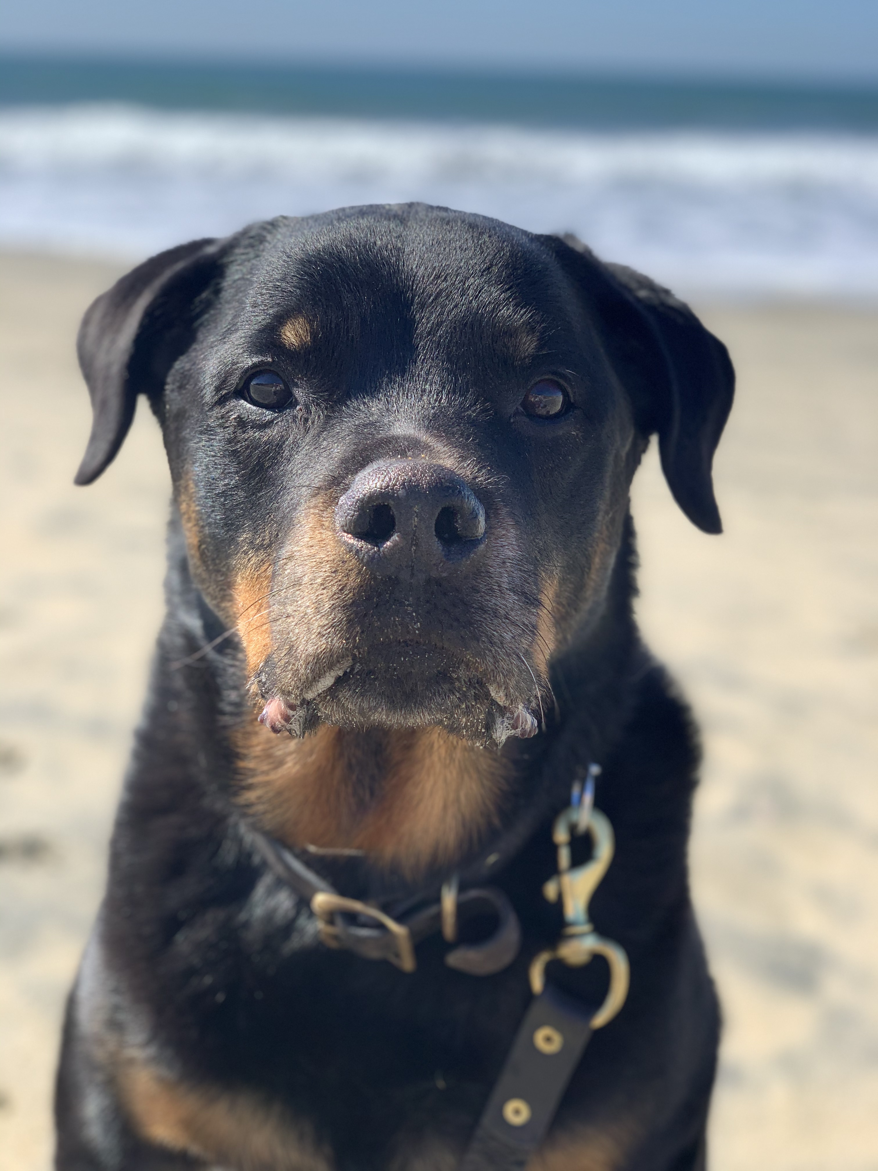 Painting of a Rottweiler at the beach
