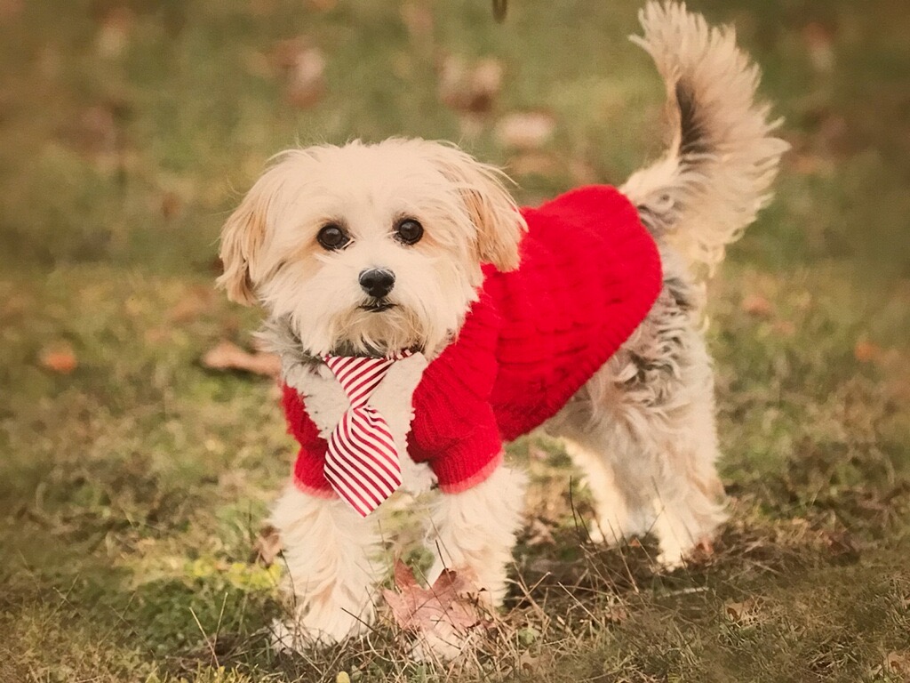 Painting of a brindle Boxer dog sitting amidst red petals.