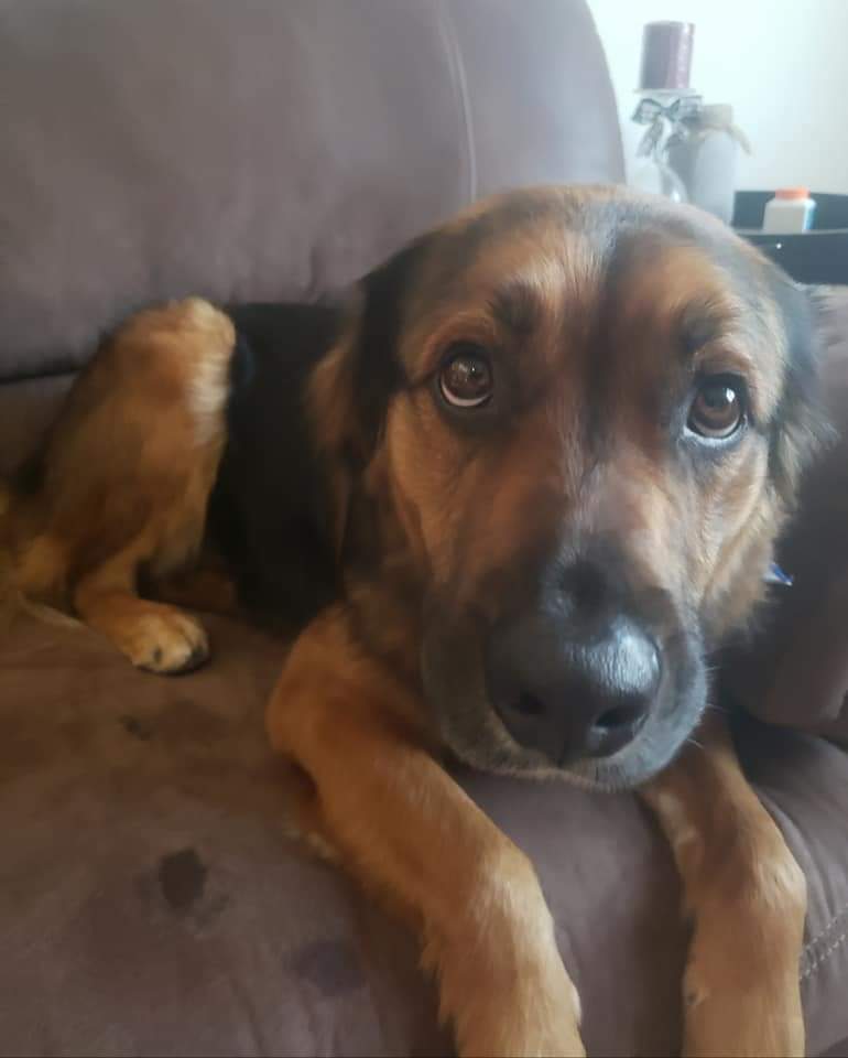 Watercolor painting of a beagle wearing a red, white, and blue bow tie.