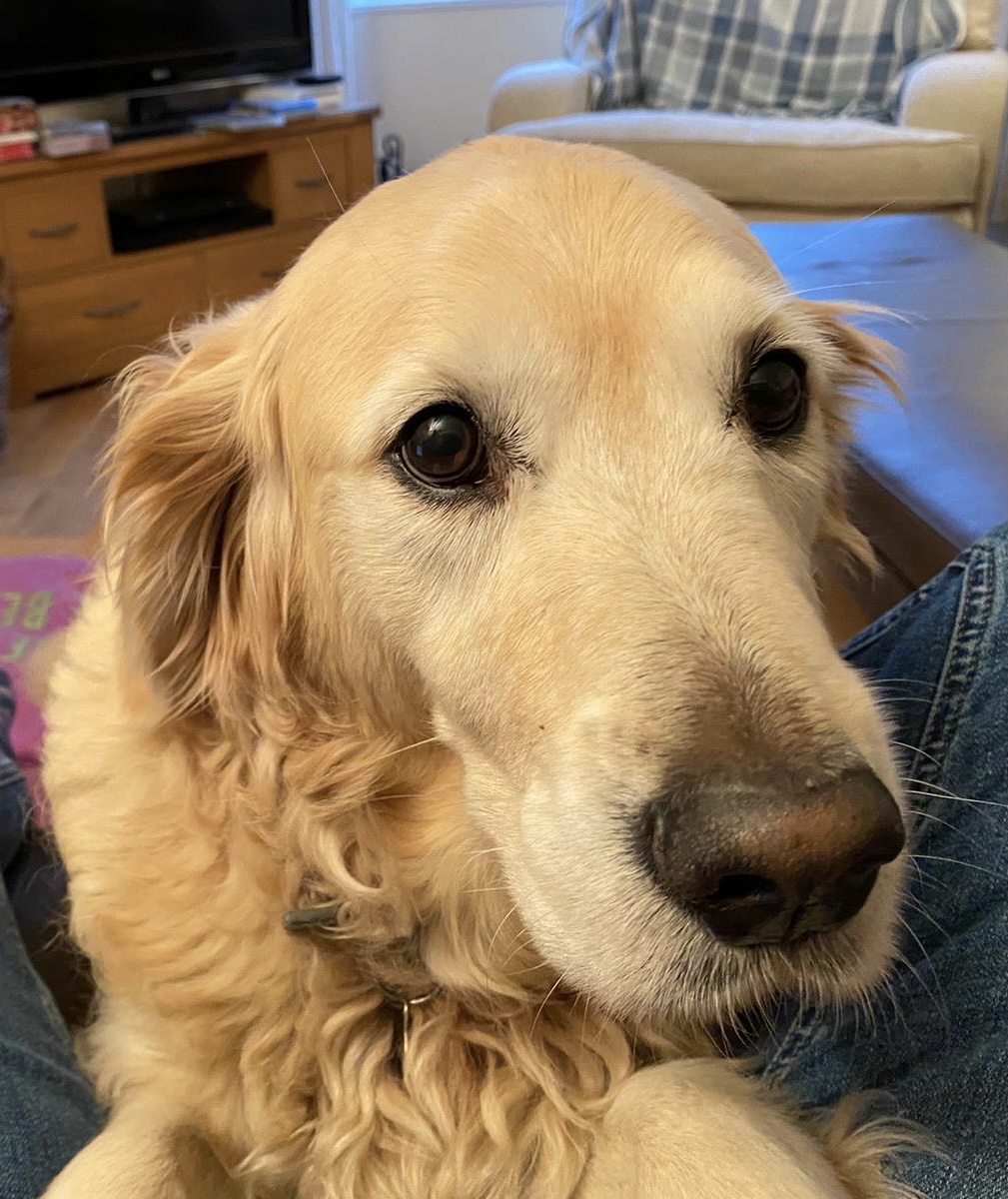 Painting of a golden retriever.