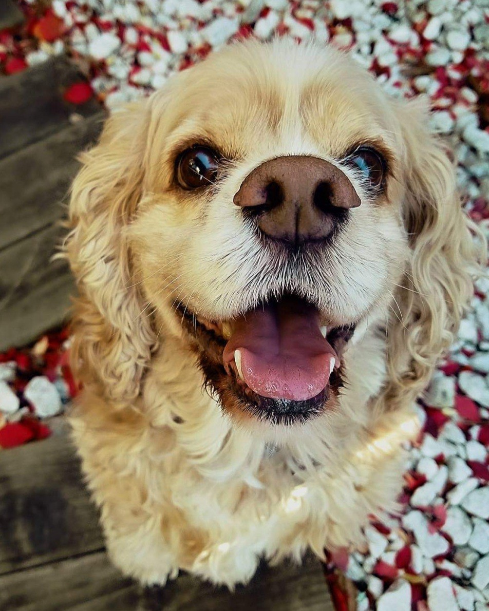 Painting of Oliver James, a happy American Cocker Spaniel.
