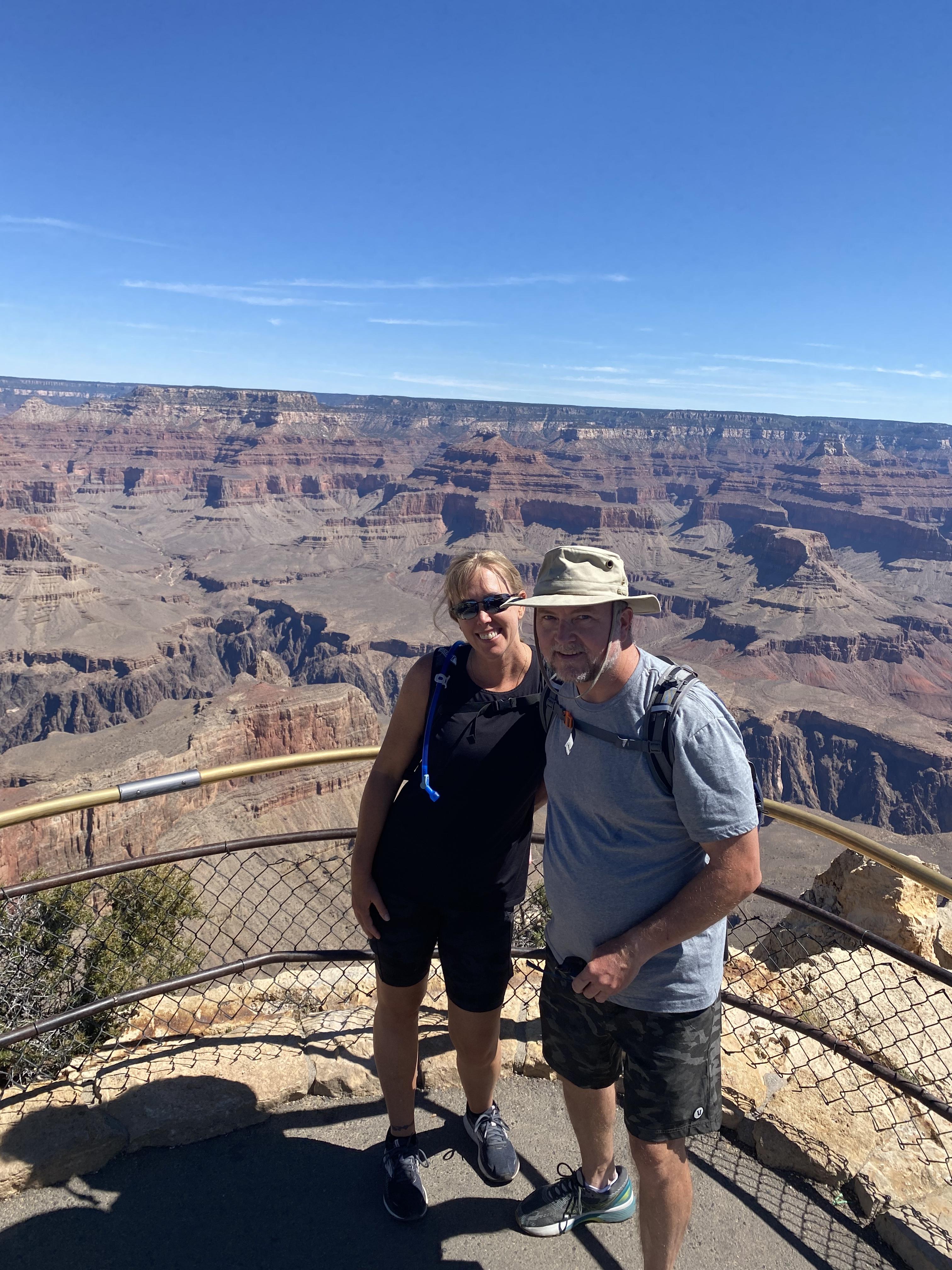 Watercolor portrait of a couple at a canyon overlook.