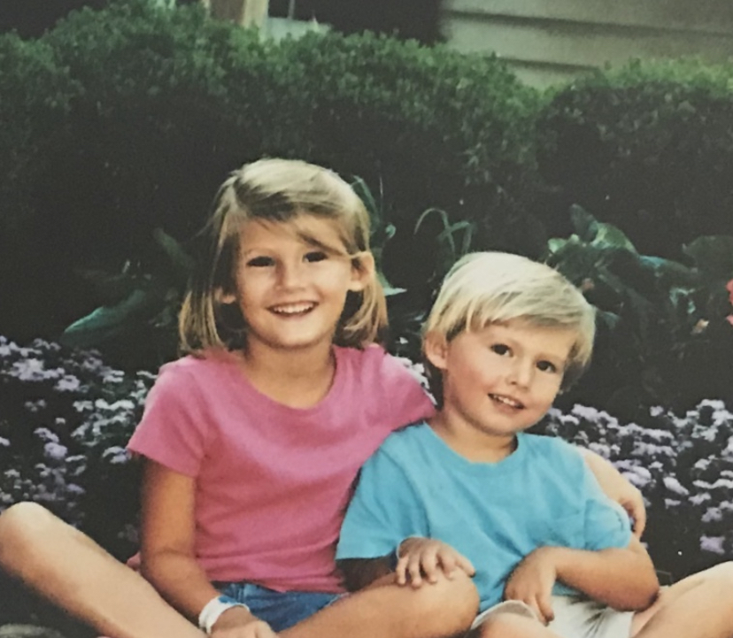 Watercolor portrait of a girl and boy sitting together.