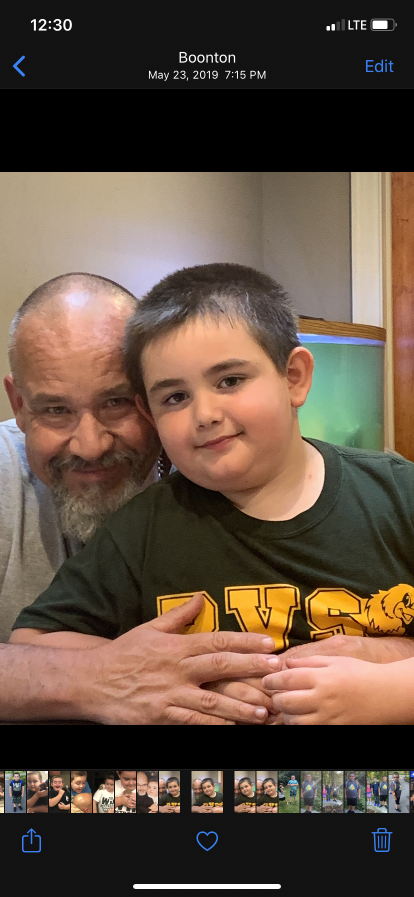 Watercolor portrait of two older men and a boy.