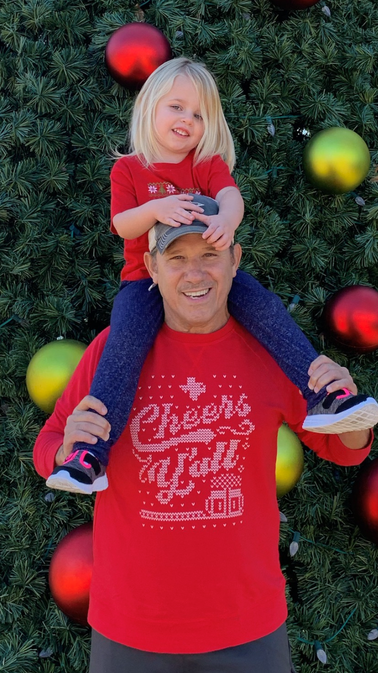 Watercolor portrait of a man carrying a young girl on his shoulders.