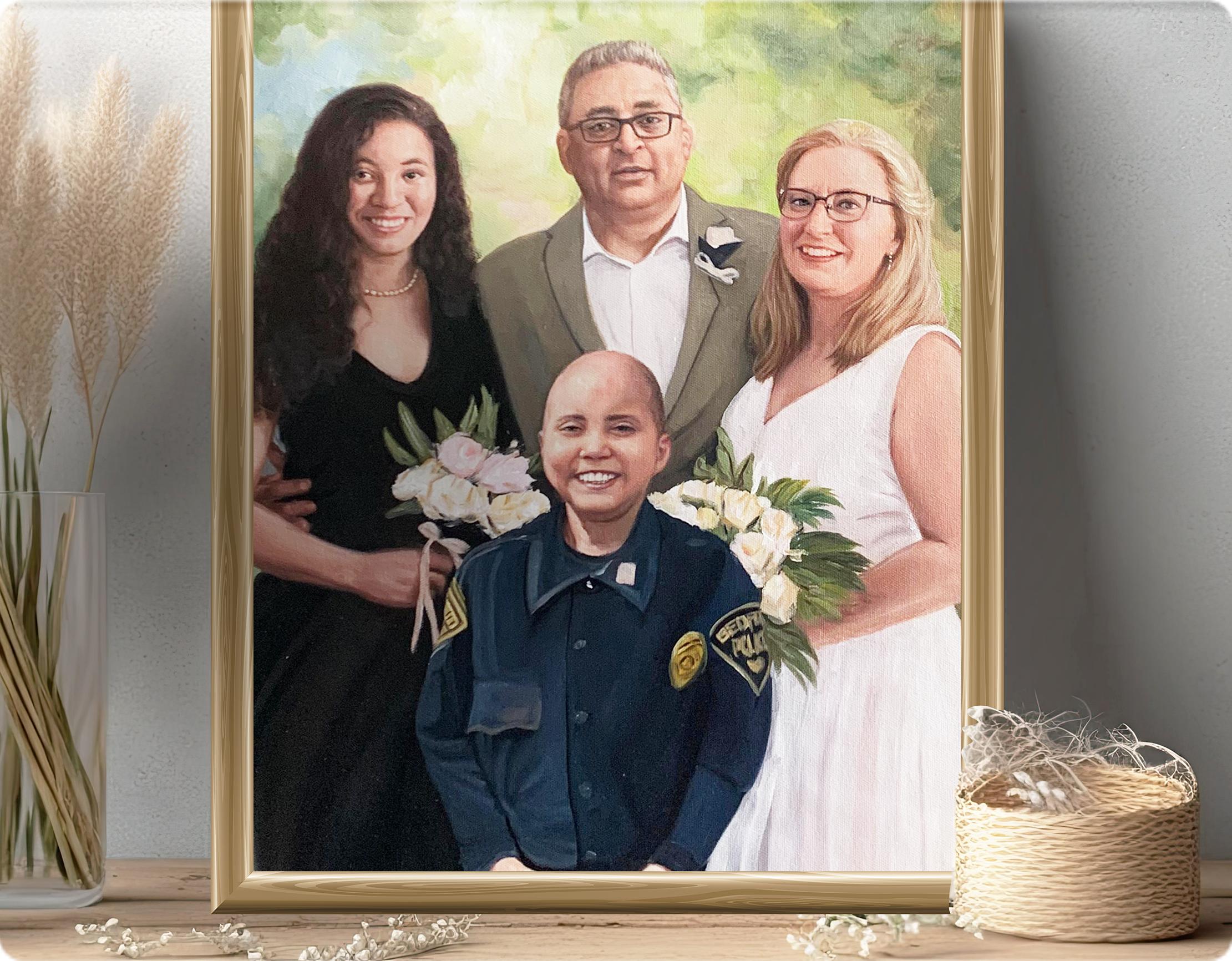 Masterfully painted by our professional portrait artists.