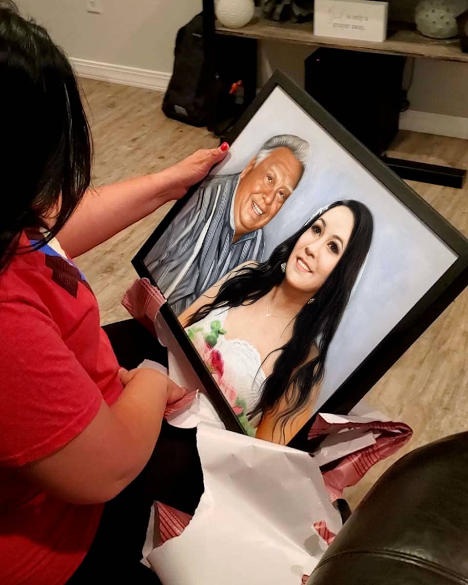 "My siblings and I wanted to give my parents a unique gift for their 50th anniversary. We thought a painting of a special memory would be perfect. We chose a picture of them snorkeling in Hawaii because we thought it was a beautiful picture that captured their sense of adventure and trust in one another. The painting of this picture brings it up several notches! "
