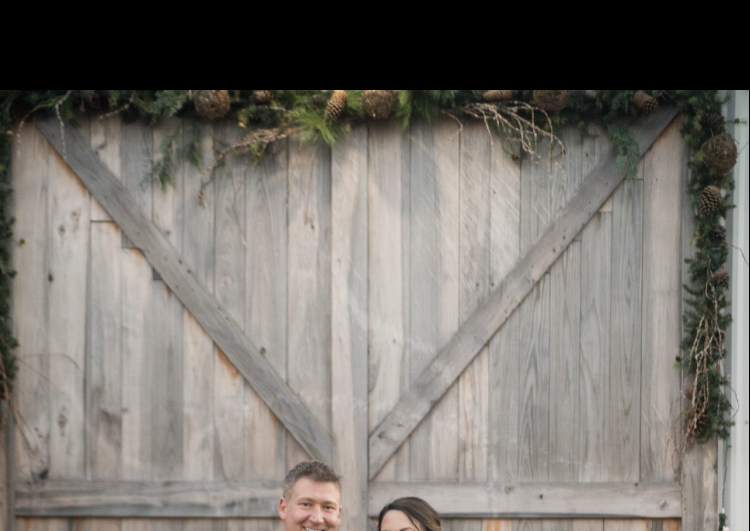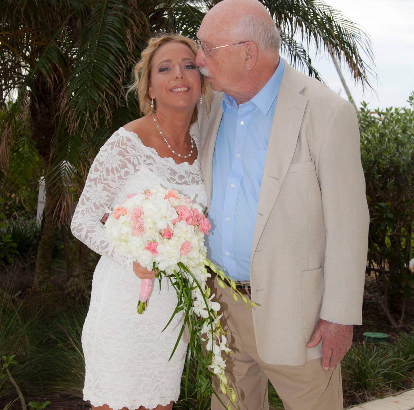 Black and white charcoal drawing of a bride and groom sharing a happy kiss.