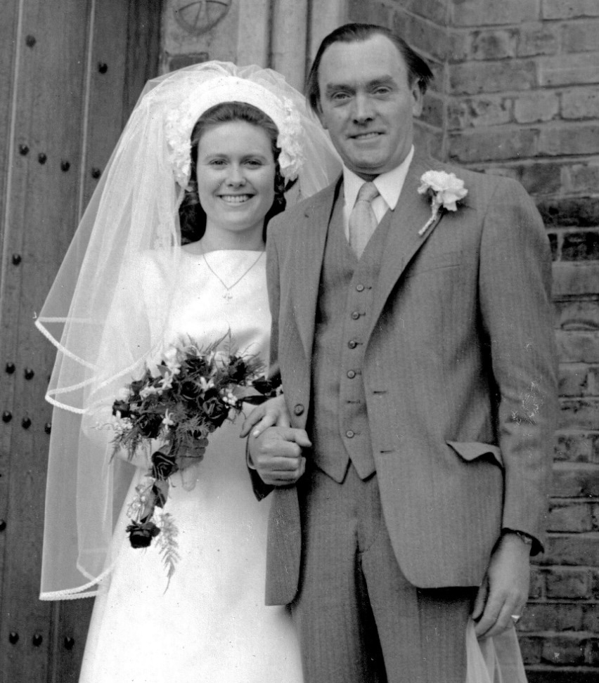 Painting of a bride and groom on their wedding day