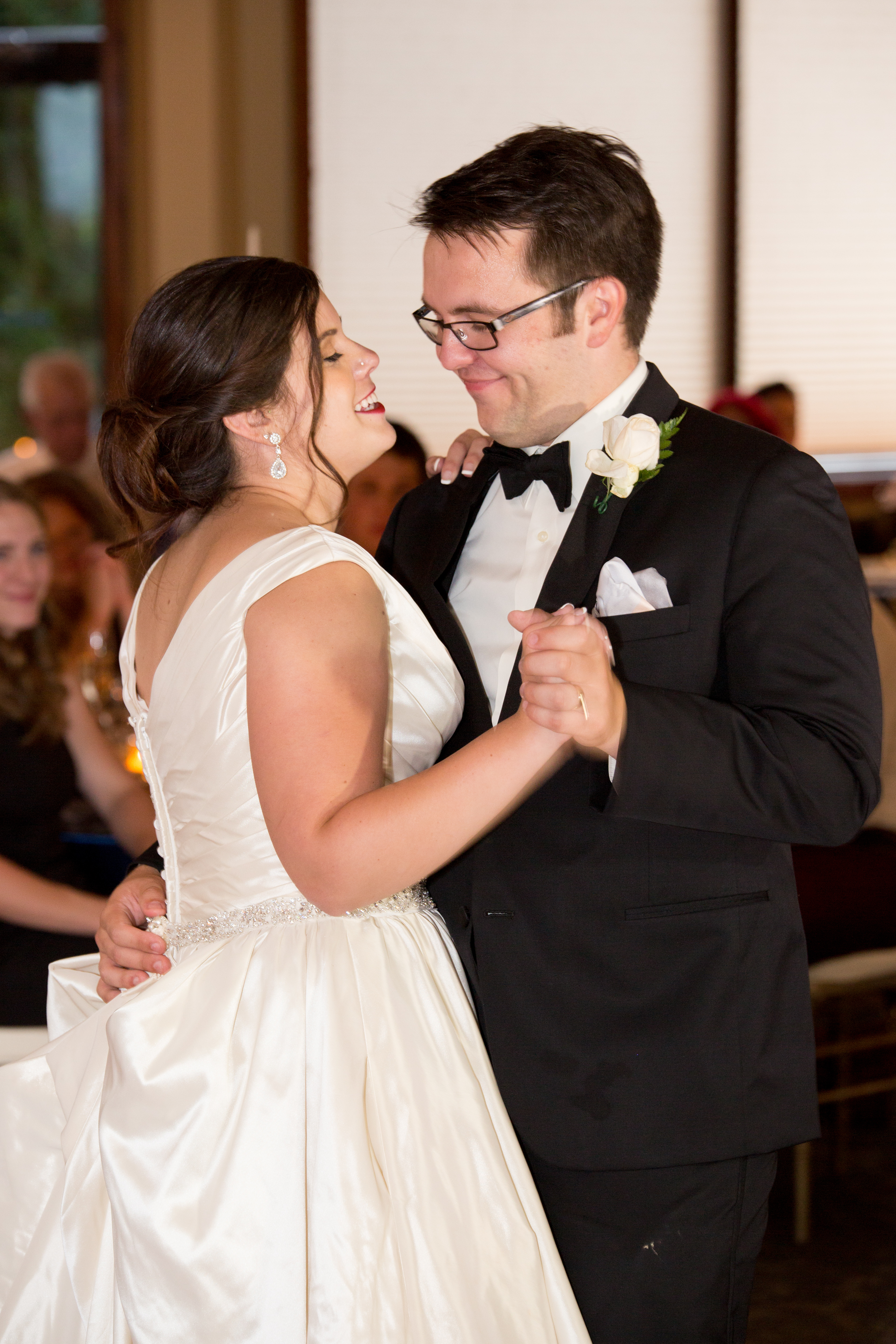 Painted portrait of a bride and groom slow dancing.
