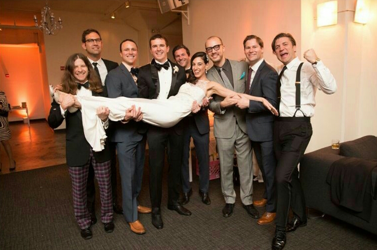 Painting of a group of men carrying a bride in a wedding dress.